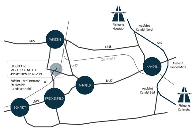 Kontakt/Anfahrt Modellflugverein Freckenfeld e.V. Kontaktmöglichkeiten Jetzt Route auf Google Maps starten Adresse:Das Vereinsgelände liegt außerhalb zwischen Freckenfeld, Minfeld und Winden auf einer kleinen Anhöhe. Koordinaten: 49°04'51.0"N 8°06'52.3"E Telefon +49 173 1941603 Email:info@mfv-freckenfeld.de